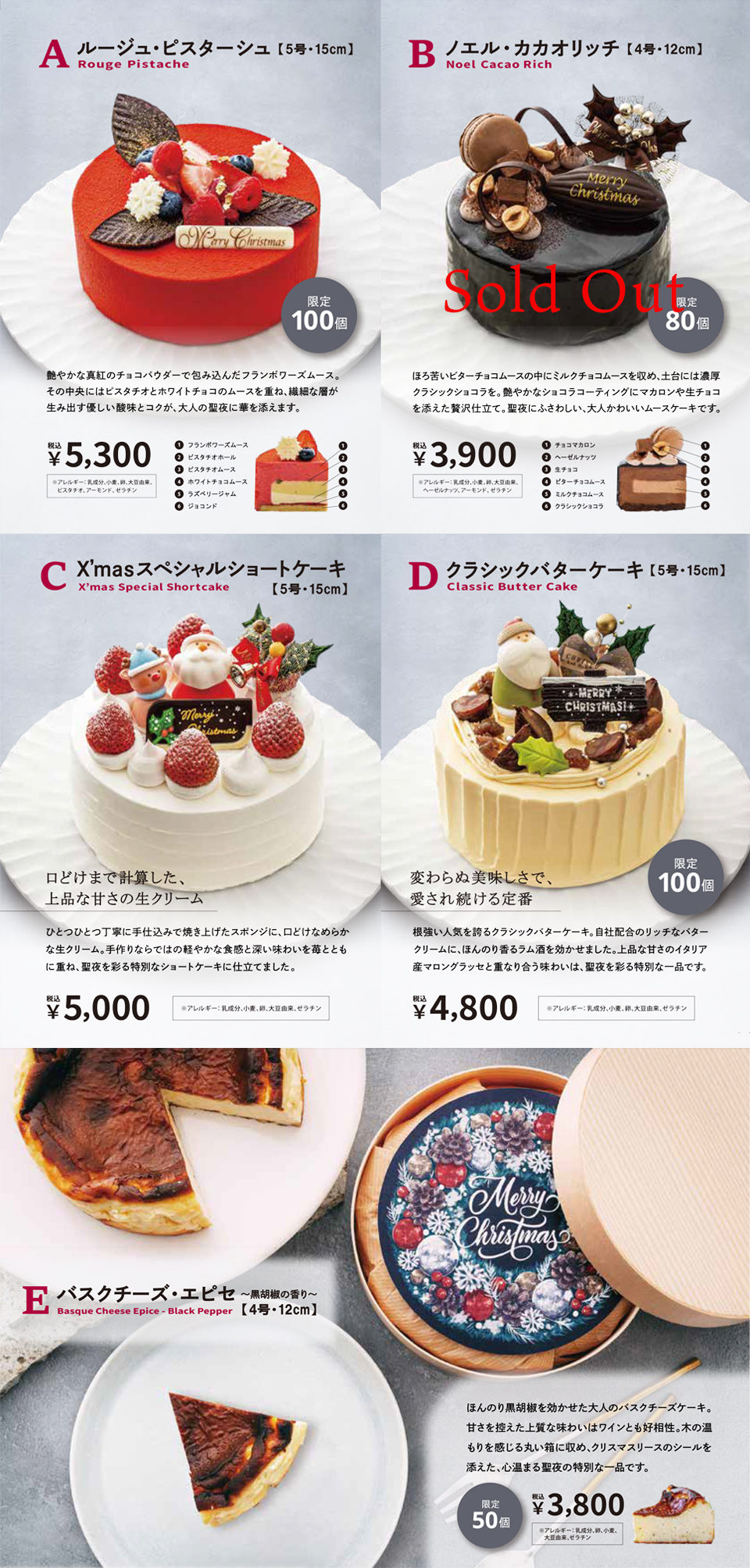 毎年リピーター多数の「クラシックバターケーキ」など、5種類のケーキが登場です。