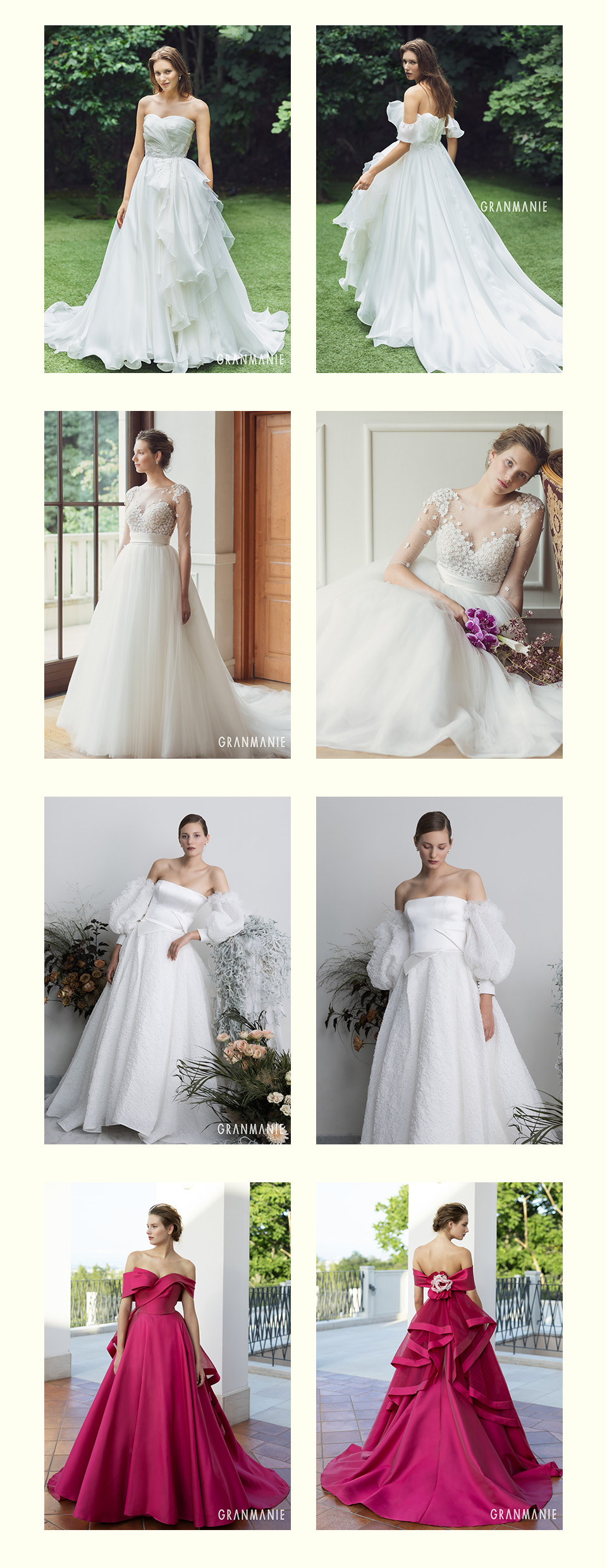 グランマニエは山形県で唯一、ジョリエのみで取り扱いを行っております。また、「最高の花嫁を作る」を信念にドレスだけでなく、姿勢の改善や立ち居振る舞いの指導も行い、美しい花嫁たちが自信と品格を持って輝けるようサポートいたします。