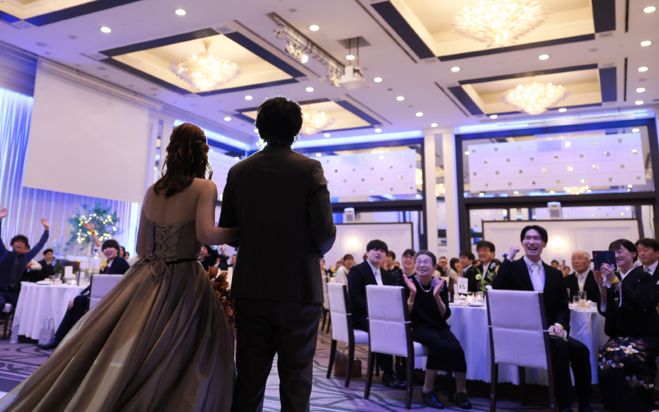 おふたりの幸せは、笑顔で過ごす穏やかな時間。おいしいものを一緒に楽しみ、たくさん笑い合う瞬間こそが、何よりの宝物です。そんな幸せをゲストの皆さまとも分かち合えるように──。お料理やドリンクにはおふたりらしい彩りを添えて、会場は笑い声と温もりに満ちた、優しいひとときとなりました。